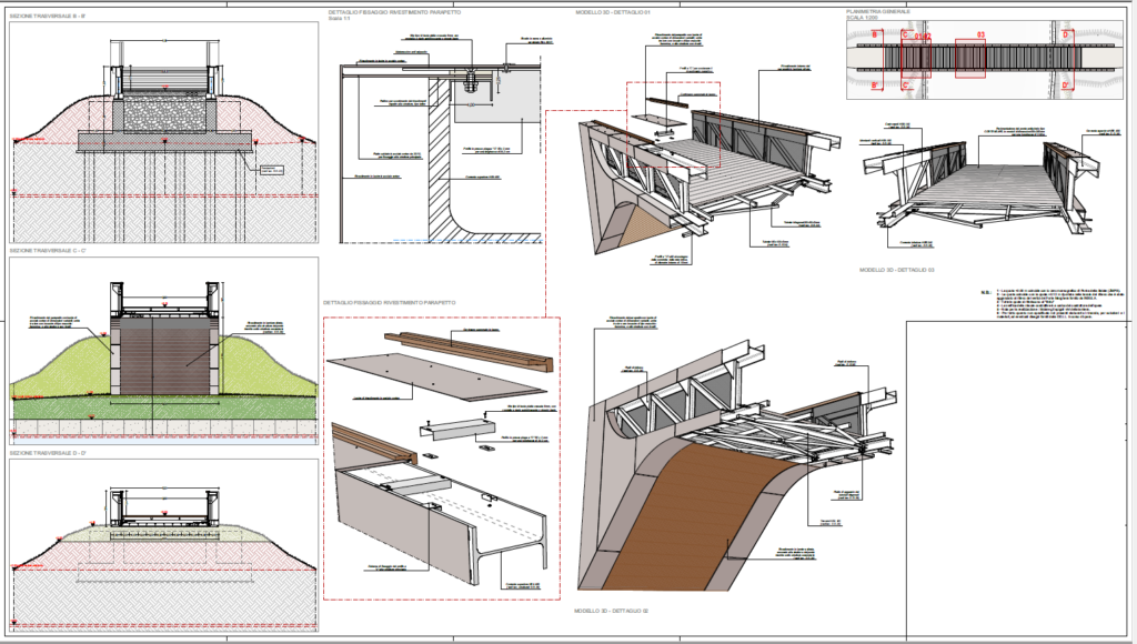 Rilievo, creazione modello virtuale 3d, produzione in capannone degli elementi separati, trasporto, posa in opera, rifiniture in loco.