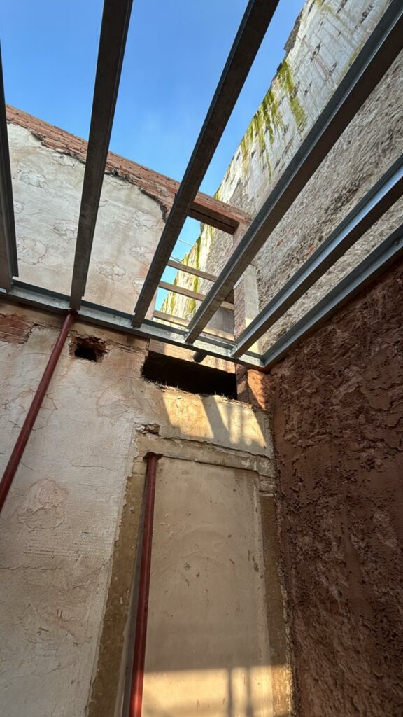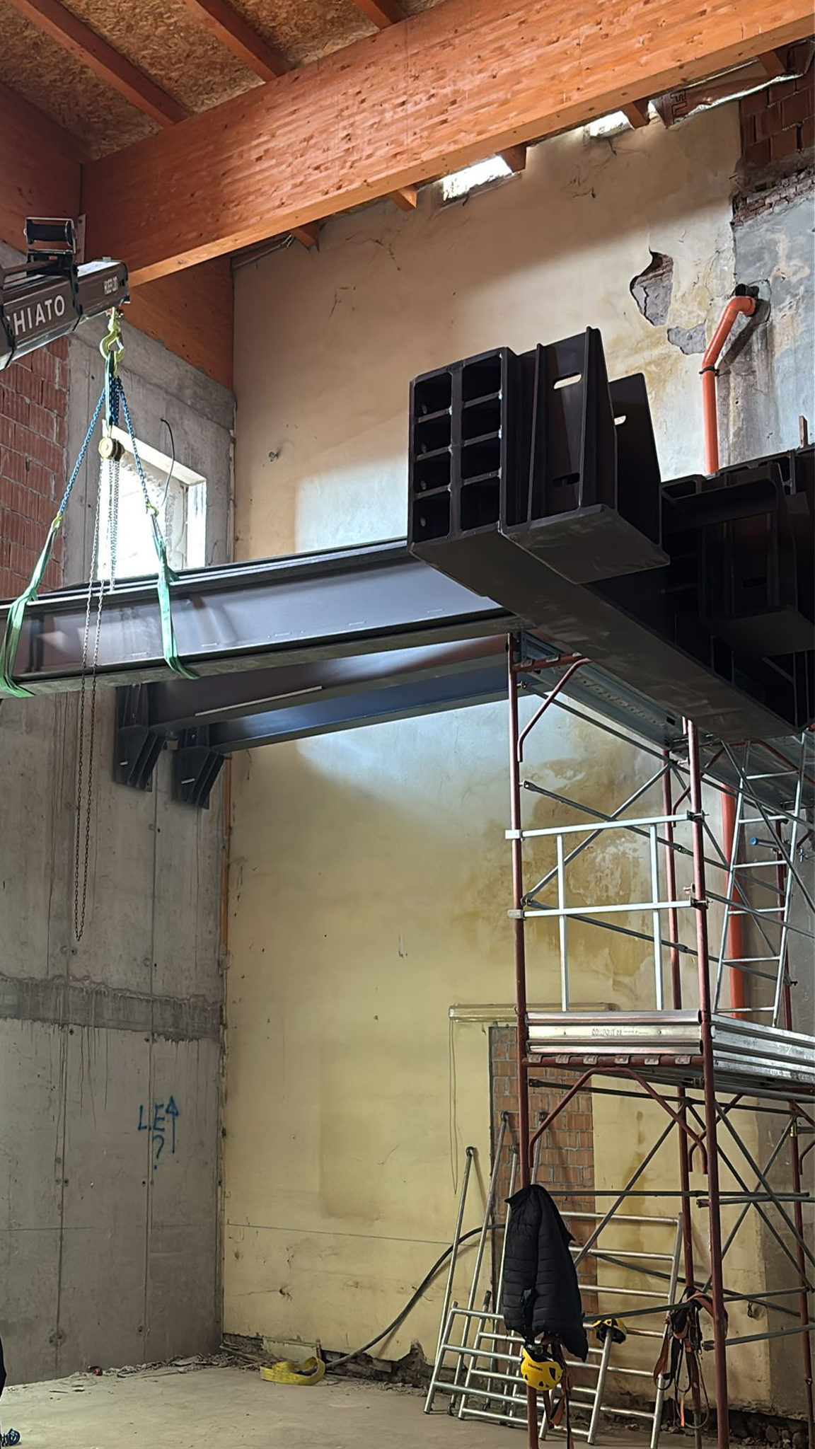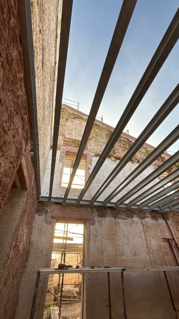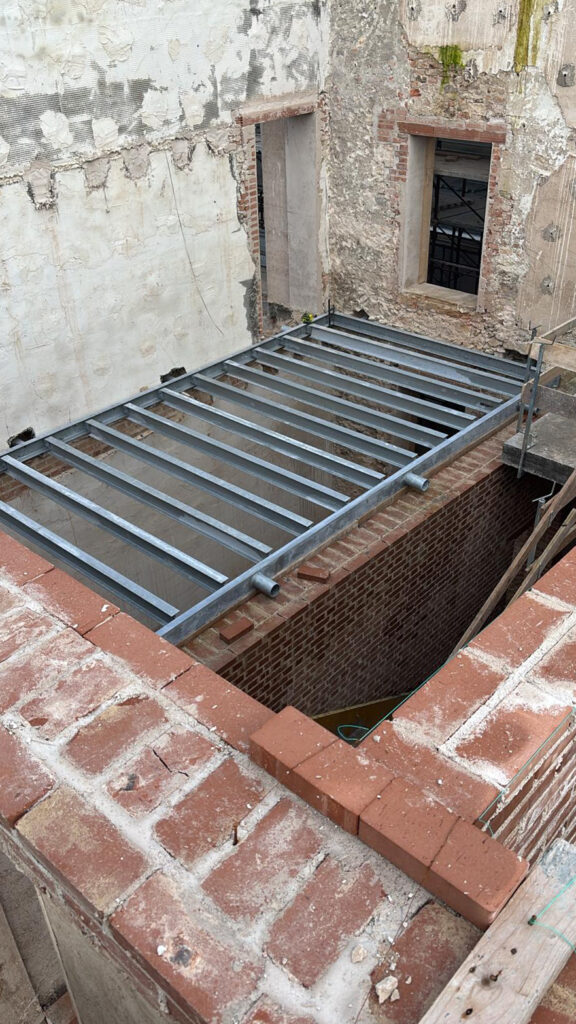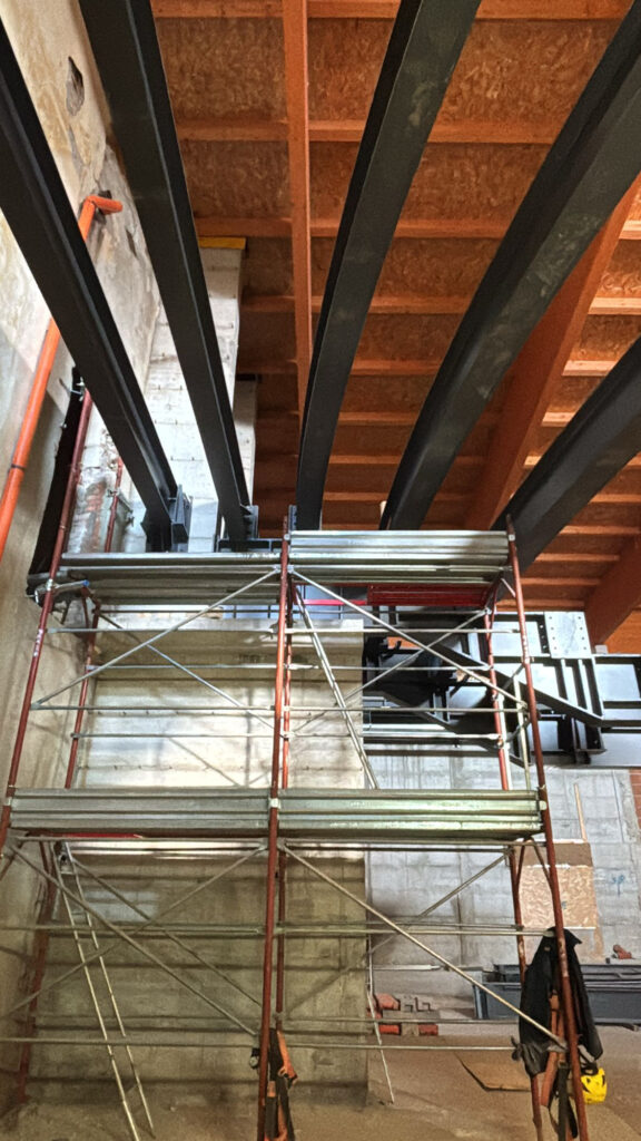 Per il cantiere sono state disegnate e prodotte e successivamente installate, strutture portanti in travi di acciaio per scale e solai. Gli elementi prodotti in capannone, sono stati successivamente trasportati e posati in opera, li poi sono state effettuate le ultime finiture.