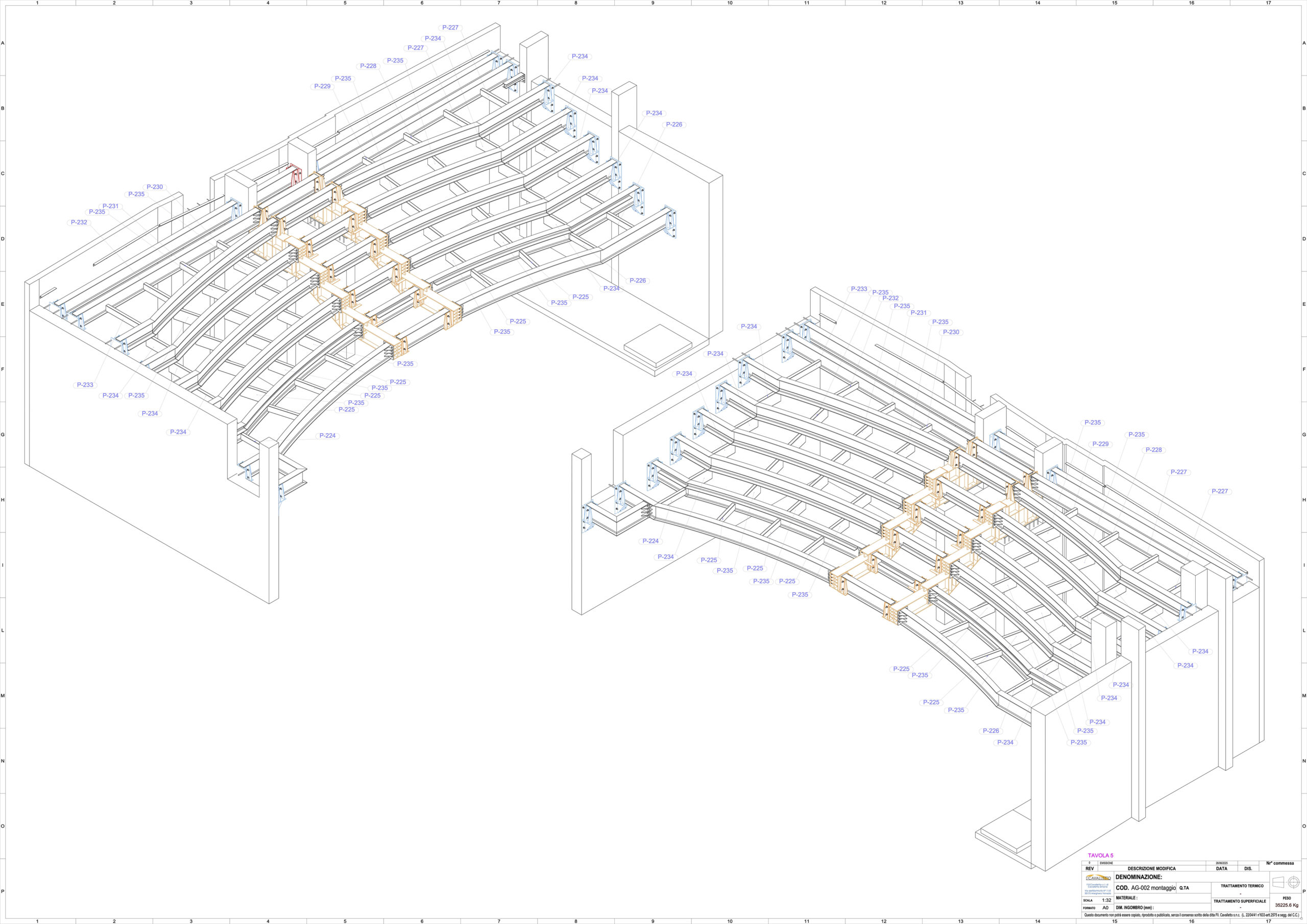 Il cantiere ha visto impiegate le migliori maestranze di Fratelli Cavalletto. Successivamente ai rilievi eseguiti mediante le ultime tecnologie Lidar, le tubazioni sono state prodotte in capannone e parzialmente assemblate. L’ultima fase del progetto si è svolta in cantiere dove i pre-assemblati, sono stati posizionati nella loro ubicazione finale dove sono stati poi rifiniti, collaudati e messi in funzione.