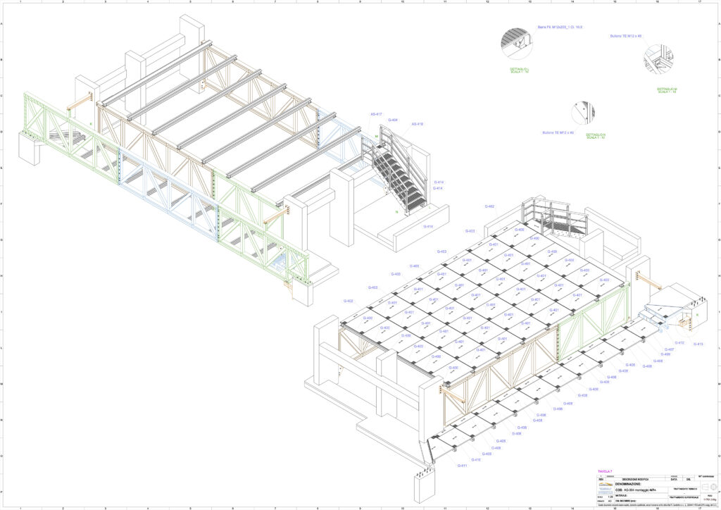 Rilievo, creazione modello virtuale 3d, produzione in capannone, trasporto, posa in opera.