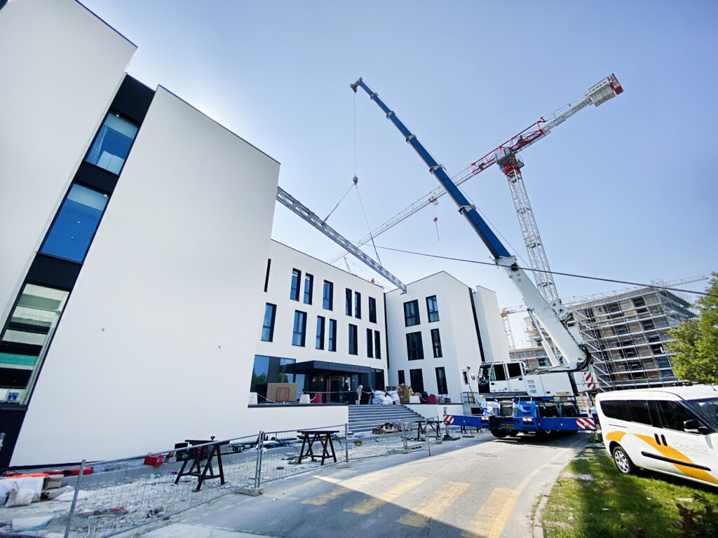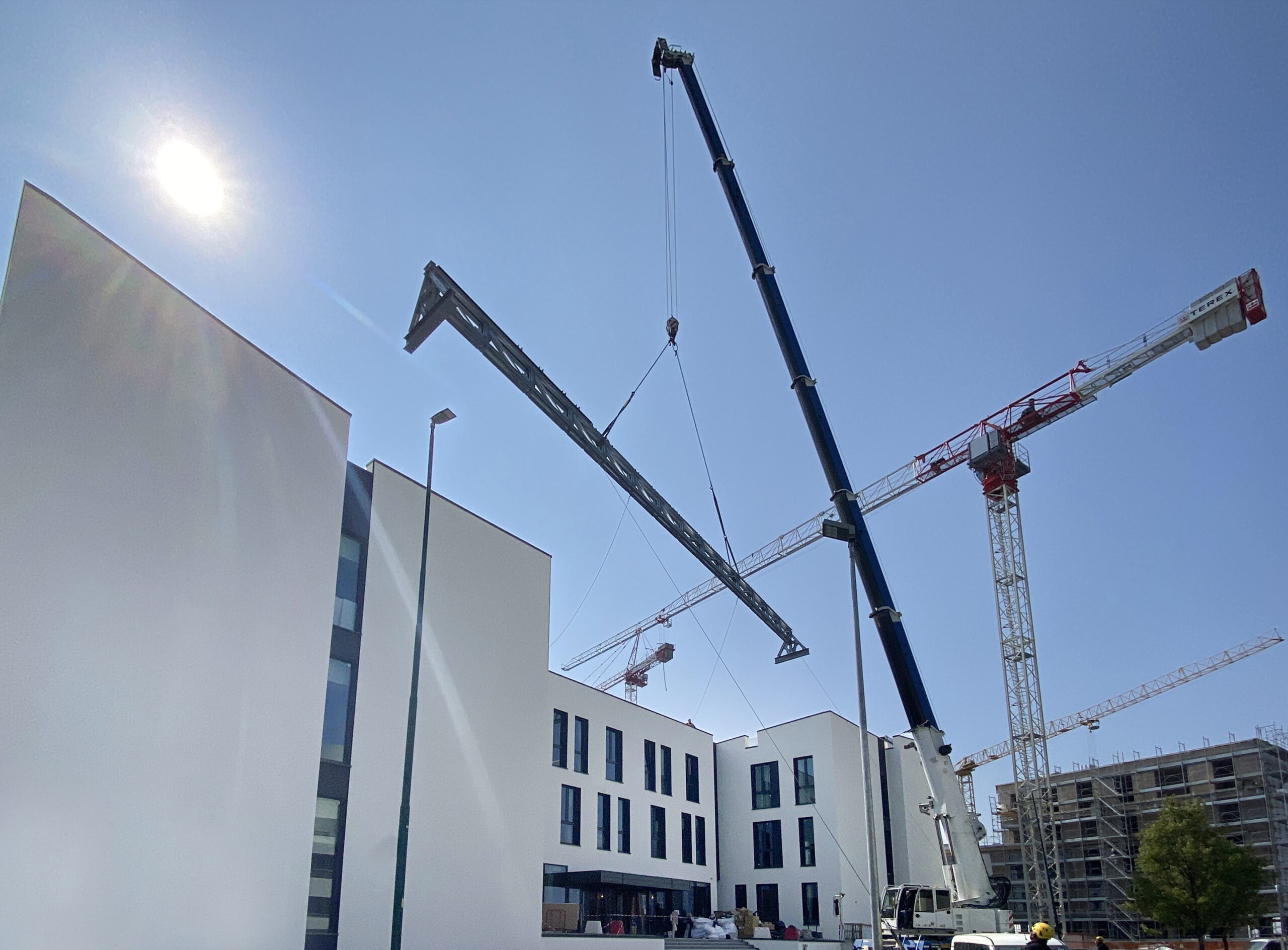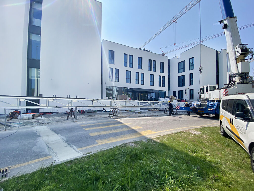 Per l’hotel è stata prodotta una grande trave reticolare in acciaio, secondo i più elevati standard di qualità. La tra, con funzione strutturale ed estetica, è stata prodotta in capannone e trasportata in cantiere. Successivamente, con l’impiego di sollevatori telescopici è stata posata ed assicurata sul tetto dell’edificio.