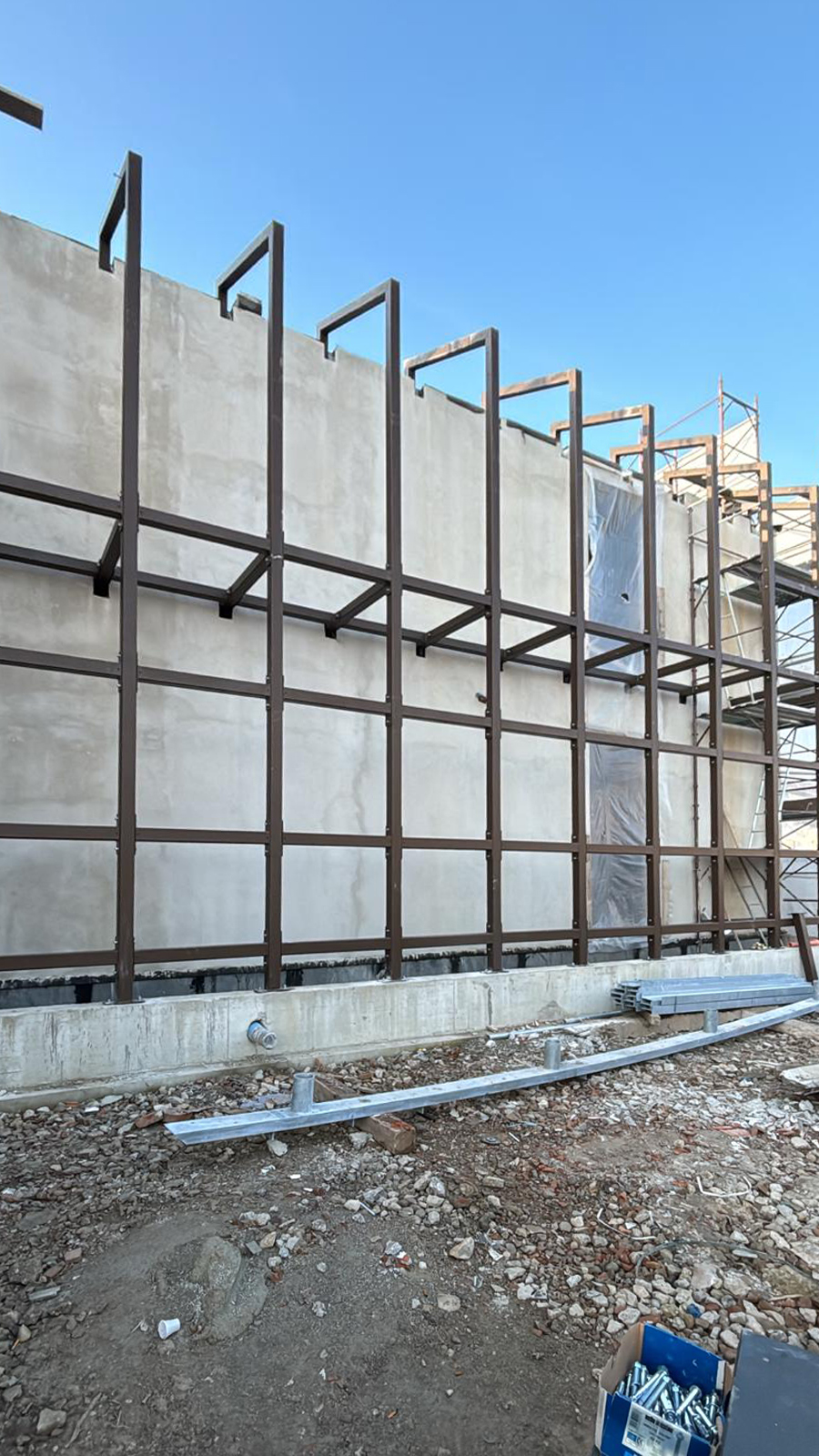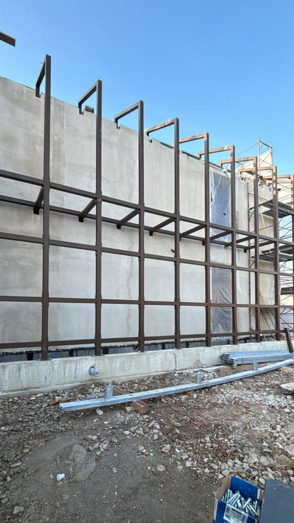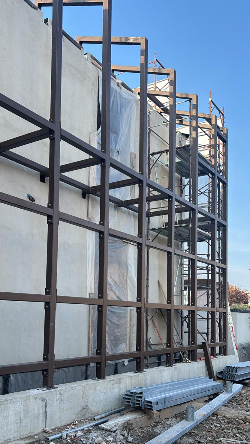 Per il cantiere sono state disegnate e prodotte e successivamente installate, strutture portanti in travi di acciaio, sia per le facciate che per i solai. Gli elementi prodotti in capannone, sono stati successivamente trasportati e posati in opera, li poi sono state effettuate le ultime finiture.